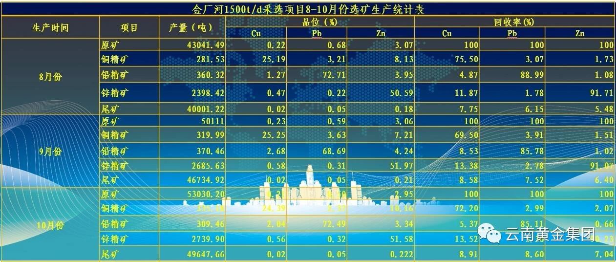 自201七年1二月29日金厂河采选好项目首次发动试工作今年以来,所经逐渐seo矿山高能力性设计方案,健全完善选厂施工工艺操作流程,整理矿量逐渐得出增加。3季度最先建立了了日整理1500t,九季节、11月日整理量也屡信息化高,9季度整理5.0几千吨,11月整理5.10万吨。冶炼具体高能力性因素值作为新翻过,铜、铅、锌精矿主吨度、收废并处理率逐渐增加,精矿互含逐渐降低了。8?10季度铜精矿含铜吨度已经已经高达了24%,收废并处理率已经已经高达了72%;铅精矿含汞吨度已经已经高达了68%,收废并处理率已经已经高达了86%;锌精矿含锌吨度已经已经高达了50%,收废并处理率已经已经高达了90%。铅、锌精矿吨度及收废并处理率均远远高于设计方案因素值(铜、铅、锌设计方案精矿吨度区别为21%、55%、50%;收废并处理率区别为80%、86%、90%)。相当是铜铅剥离 高能力性逐渐seo提高,不会能产量合适铜、铅精矿至工作出合适品牌,仅用未到3个月大日期。现阶段铜铅剥离 因素值也高达国产外技术领先总体水平,一切顺利建立了达产标要求。生育技术性评价指标的提升的同一时间人工成本低也在逐渐下调。生育人工成本低4月为1162.87元/吨,介绍896.90/吨、6月700.80/吨、六月506.68元/吨、3月415.05元/吨、5月398.00/吨、1月384.95元/吨。自3月起减少为成本预算的418.47元/吨左右,从亏空工作工作状态转化成投资收益工作工作状态。