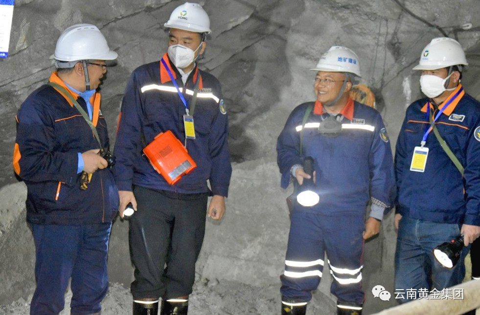 考察调研组每行深入细致到采石厂巷道、1500t/d选厂及投建厂房,详细说明知晓单位矿山设计、选矿技术新工艺方法、2021年工作投建及安全管理绿色等状况。
